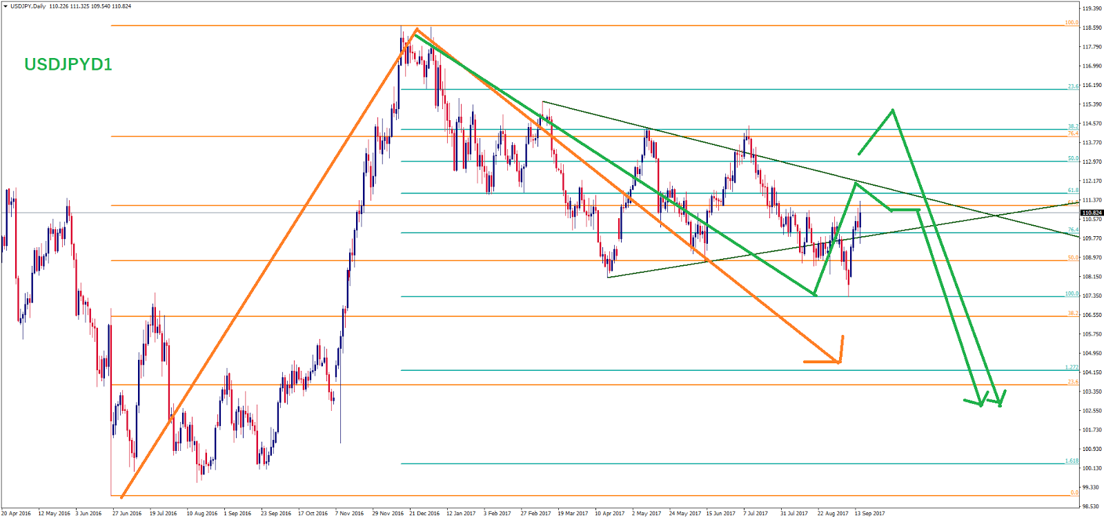 ※相場の上げ下げをフィボナッチとギャンを使ったライン分析で配信しますが、必ずご自身で分析の上、自己責任で行って下さい。